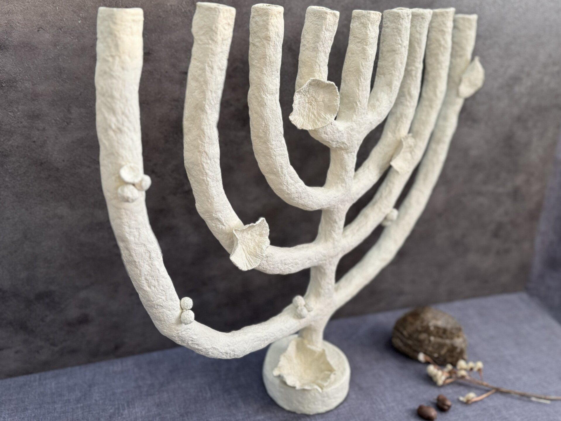 Materials: Recycled paper mache, Eco-friendly glue, Eco-friendly decorative paints, Steel